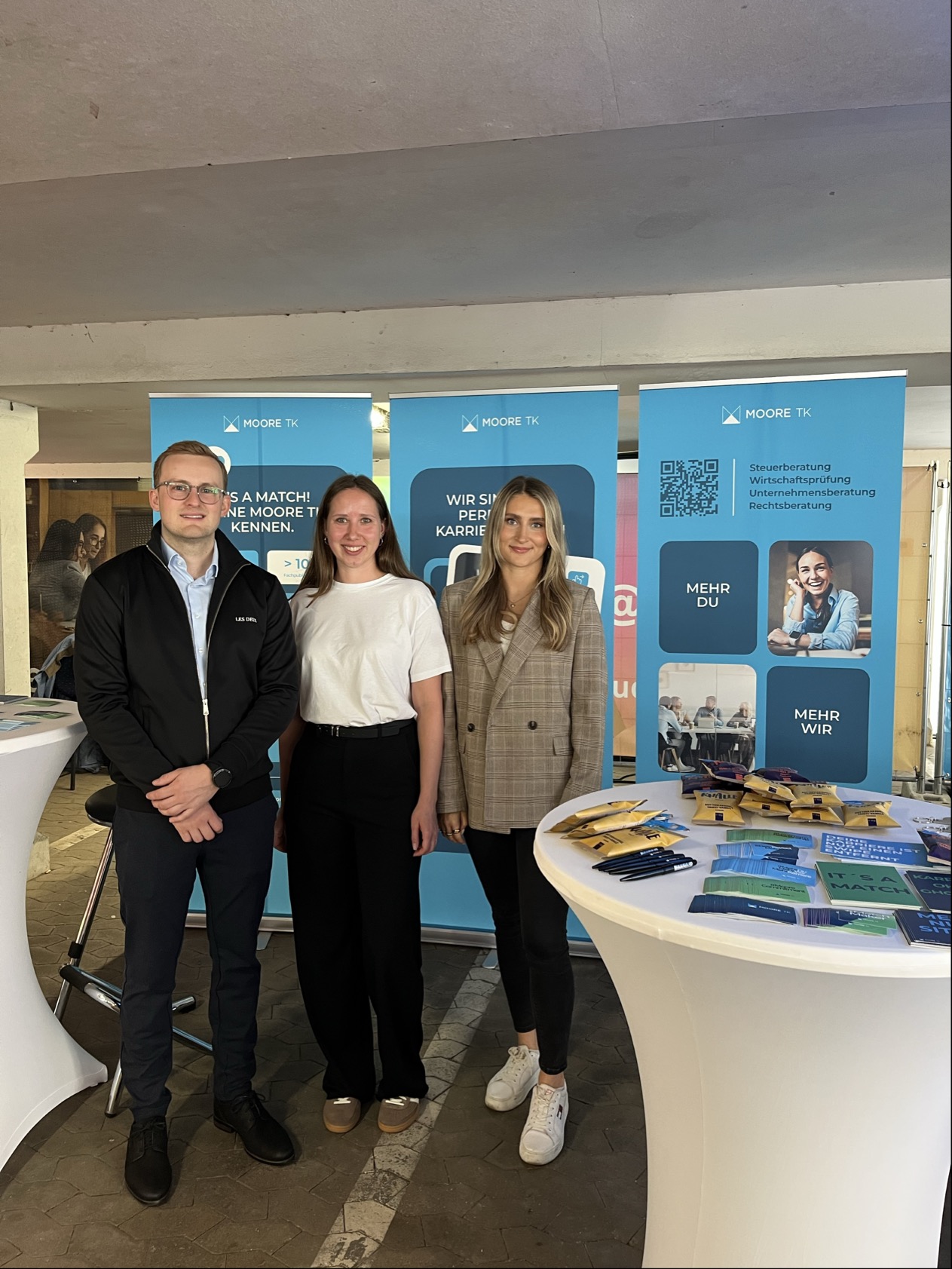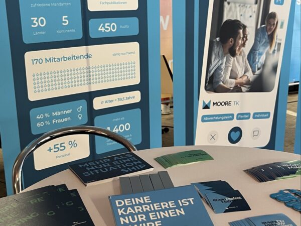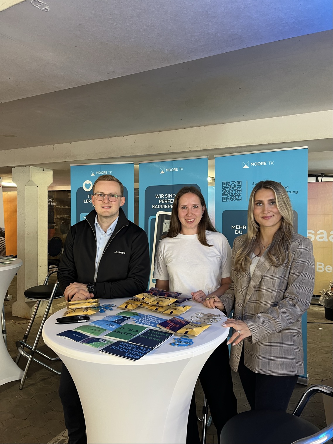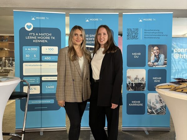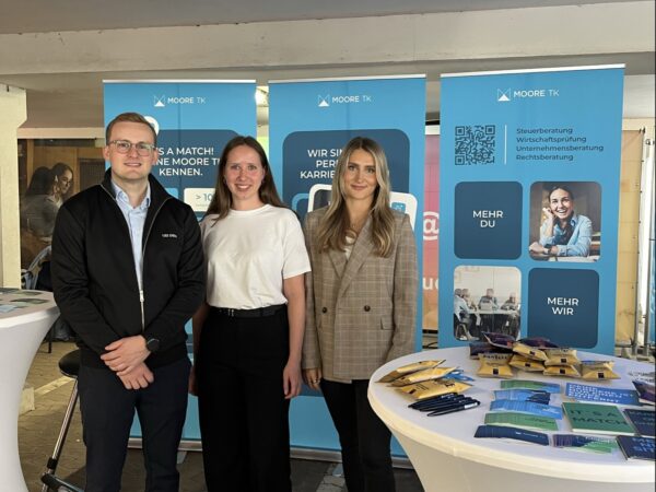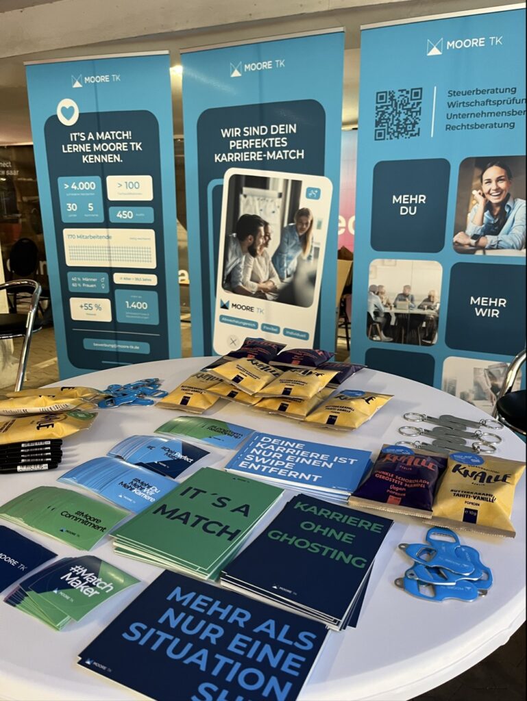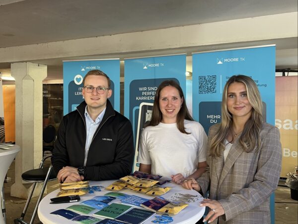 Am 11. Juni 2025 war Moore TK auf der Karrieremesse connect an der Hochschule für Technik und Wirtschaft des Saarlandes und das mit großem Erfolg. Zahlreiche Studierende nutzten die Gelegenheit, sich über Einstiegsmöglichkeiten in die Steuerberatung, Wirtschaftsprüfung, Unternehmensberatung und Rechtsberatung zu informieren. Unser HR-Team sowie Fachmitarbeitende aus der Praxis standen für persönliche Gespräche bereit und gaben authentische Einblicke in den Arbeitsalltag bei Moore TK. Besonders beliebt war unsere exklusive Goodie Bag mit kleinen Überraschungen.